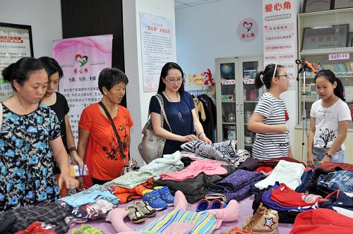 江苏常州市天宁区天宁街道五角场社区居民在“邻里帮”闲置物品以物换物活动中选择自己所需的物品(8月7日摄)★★。新华社发(胡平 摄)