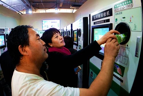 在北京大钟寺一家超市皮皮网络电视皮皮网络电视★★,市民将塑料饮料瓶投入智能回收机(10月29日摄)★★。塑料饮料瓶或易拉罐投入机器后★★,系统将会通过互联网自动为市民的公交一卡通存入相应金额★★,起到资源安全回收★★、循环利用的作用★★。新华社记者 李欣 摄